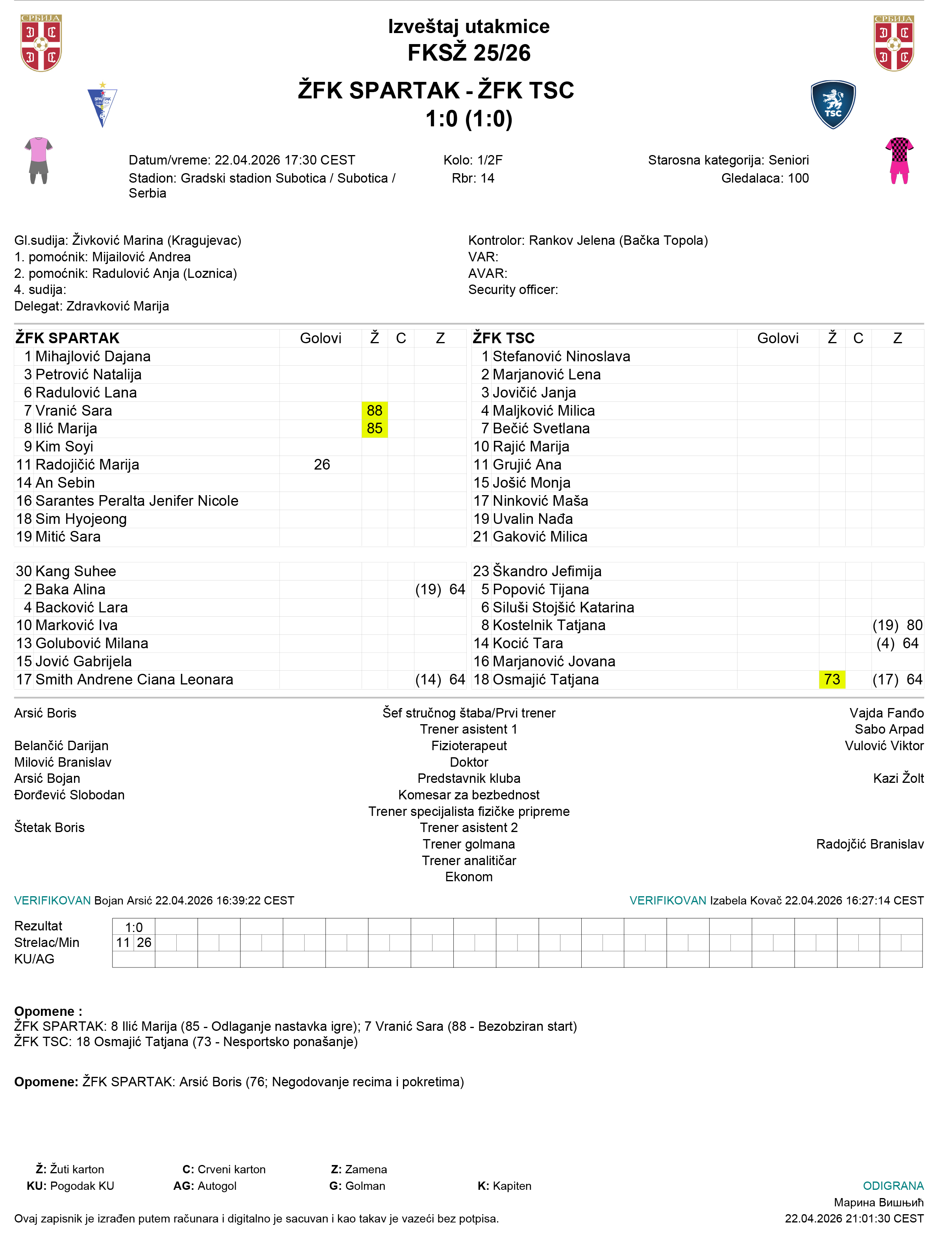 ŽFK Spartak se plasirao u finale nacionalnog Kupa. Gol odluke postigla je Marija Radojičić, a tim je pokazao karakter i borbenost kada je najpotrebnije.